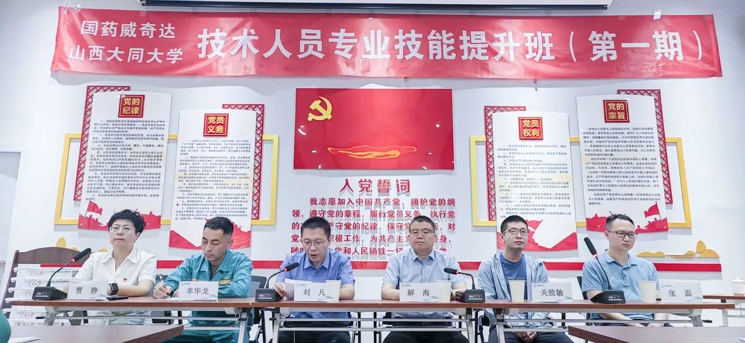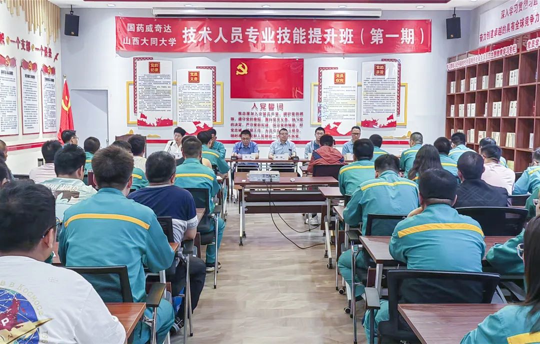 为加快推进国药威奇达与山西大同大学战略合作,深入促进双方人才培养和产学研深度融合,全面提高威奇达员工整体素质和技能水平。6月17日,国药威奇达与山西大同大学联合举办的“国药威奇达技术人员专业技能提升班(第一期)”正式开班。国药威奇达党委委员、财务总监刘凡与山西大同大学化学与化工学院副院长解海出席开班仪式并致辞,公司53名来自生产一线的技术骨干参加培训。