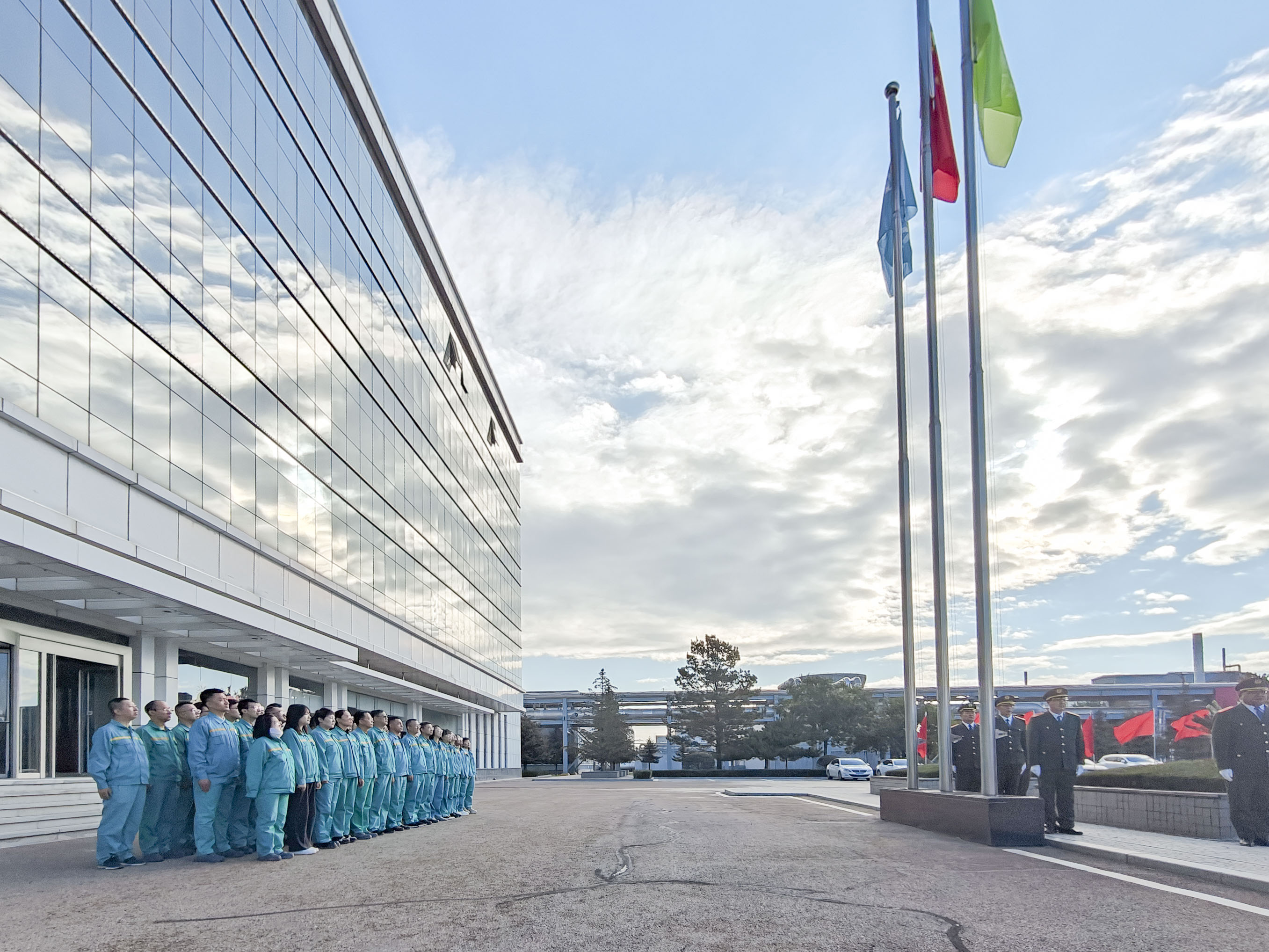 10月1日,上午9时,公司各事业部举行升旗仪式,党员职工代表齐聚办公楼前广场,升国旗,唱国歌,庆祝新中国成立75周年,表达对伟大祖国的无限热爱和深情祝福,共祝祖国繁荣昌盛、国泰民安。
