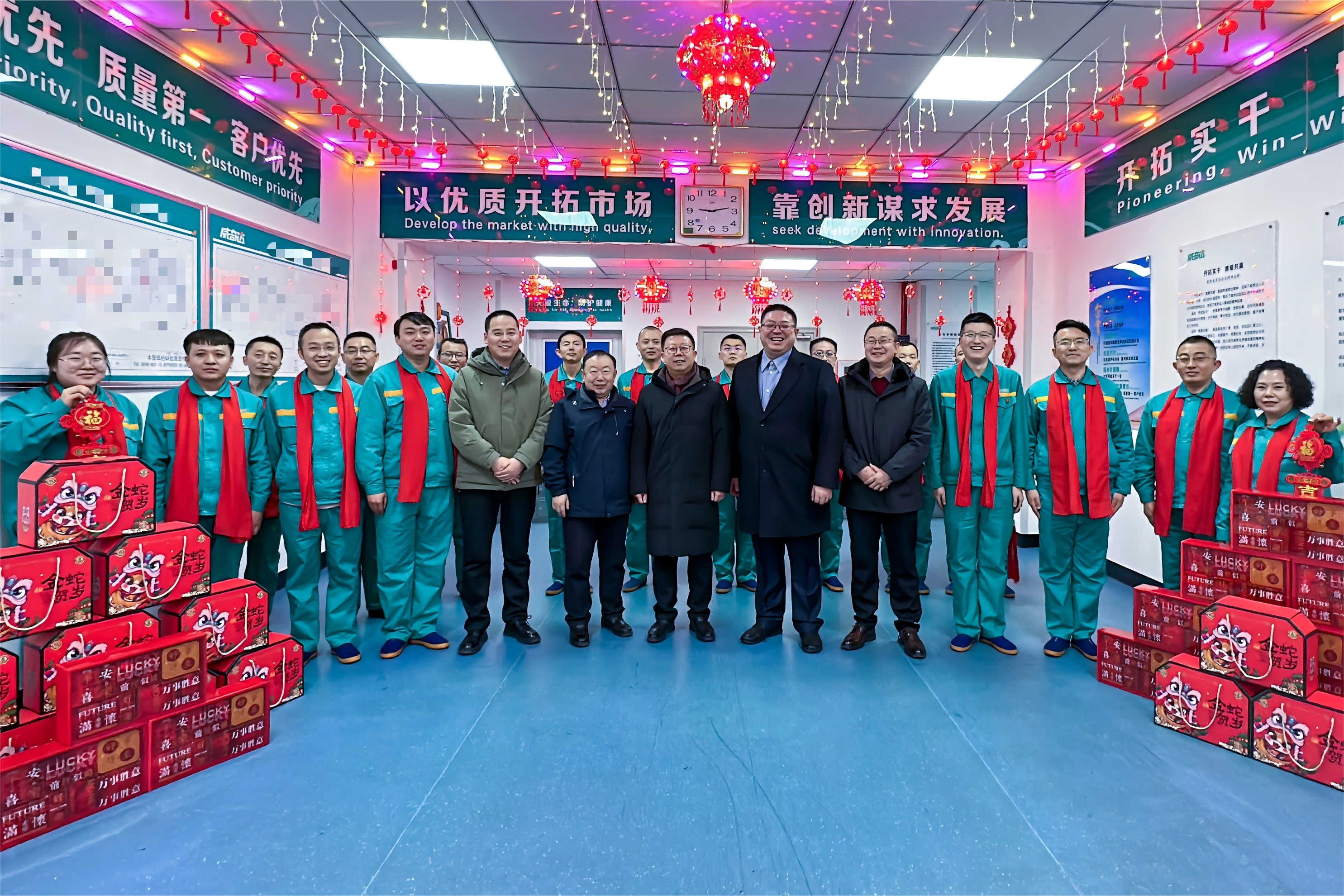 声声问候暖人心,句句祝福递深情。1月28日,在乙巳蛇年的钟声即将敲响之际,公司党委书记、副董事长、总经理苗瑞春带领公司党政领导班子、中层管理干部深入生产车间,慰问除夕夜仍然坚守在生产一线的干部职工,为大家送去新春的祝福和节日慰问品,勉励大家在新的一年跑好开局“第一棒”,全力夺取首季开门红,奋力开创公司高质量发展新局面。