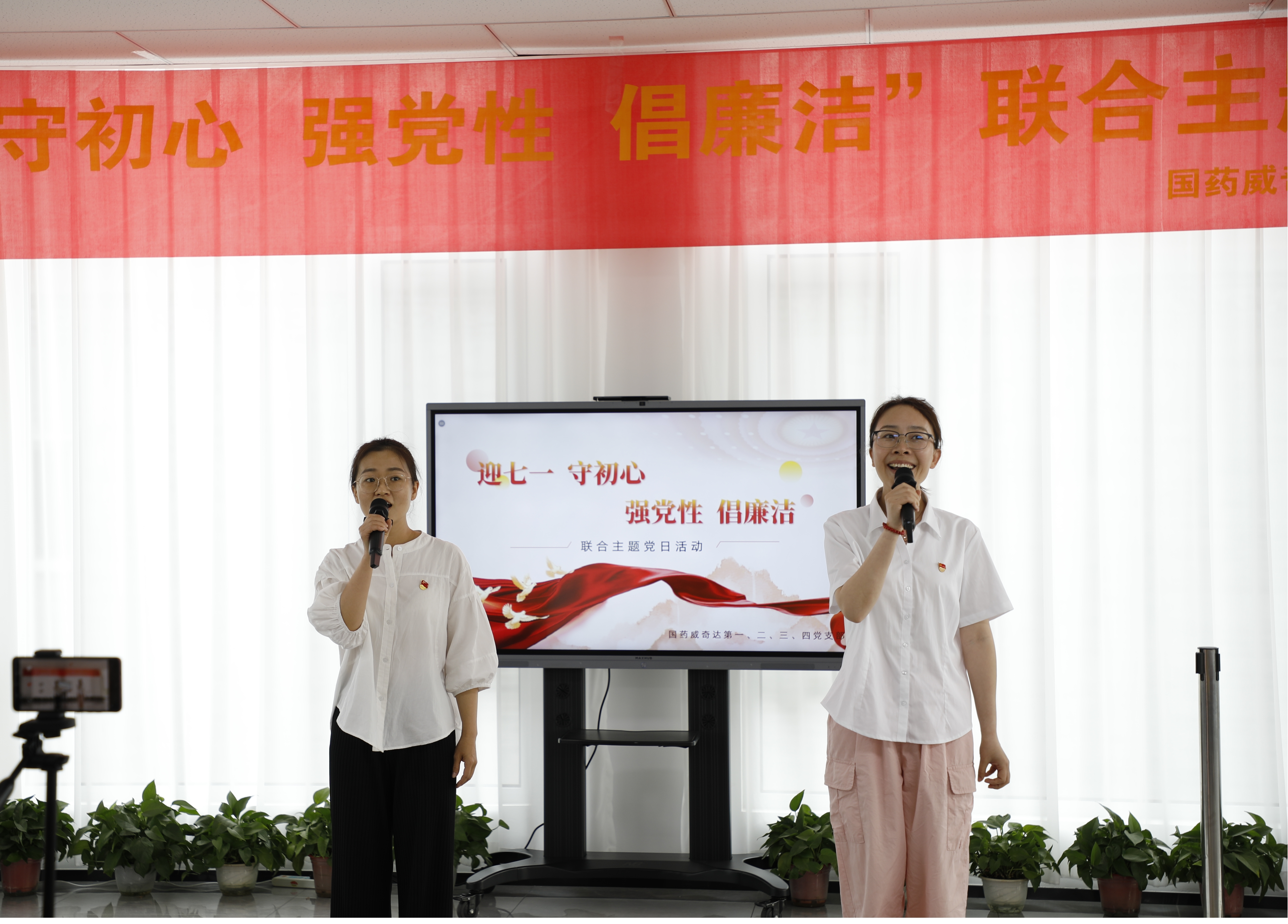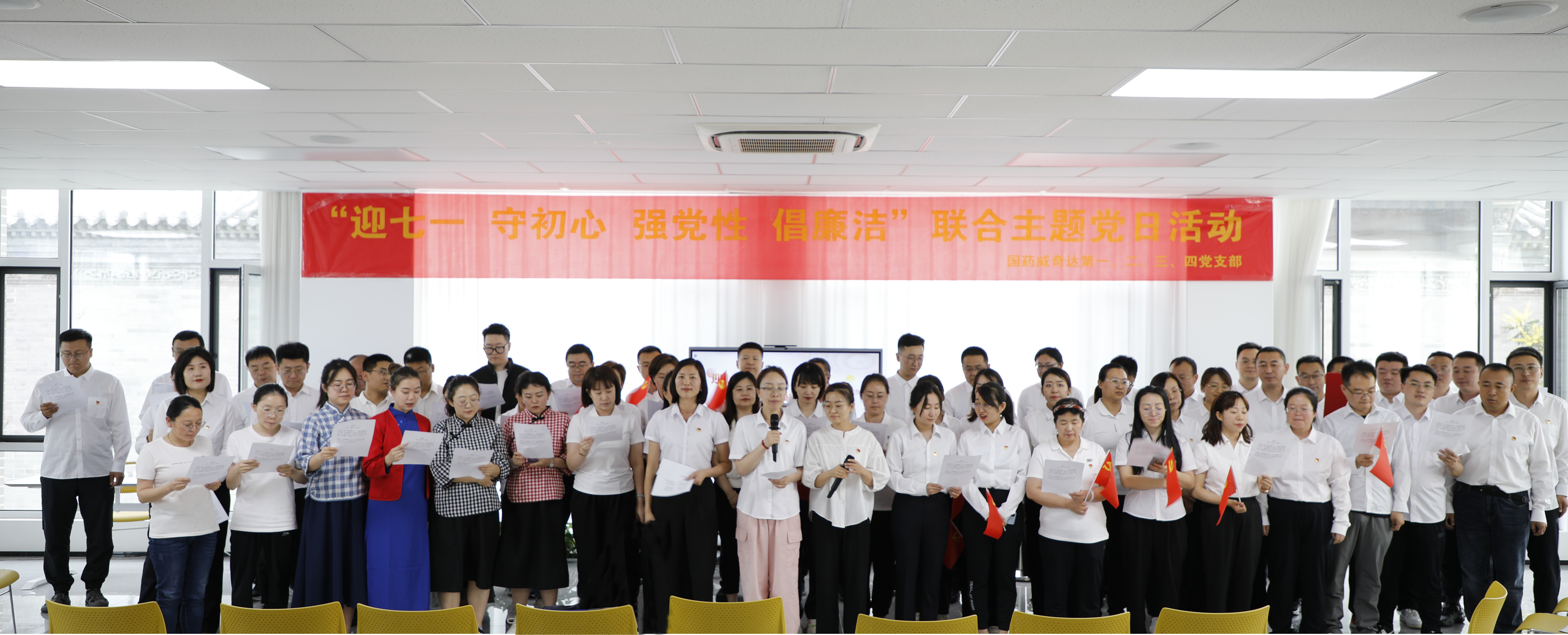 为喜迎建党103周年,庆祝中华人民共和国成立75周年,引导党员干部坚定理想信念,强化纪律和规矩意识,筑牢反腐倡廉防线,进一步推动党纪学习教育取得实效,国药威奇达第一党支部、第二党支部、第三党支部及第四党支部于6月26日开展“ 迎七一 守初心 强党性 倡廉洁”联合主题党日活动,党员们用朗诵、歌唱、沉浸式党课等方式表达对党的赤诚之心和对祖国深深的热爱,凝聚奋进新征程力量,营造风清气正的干事创业氛围。