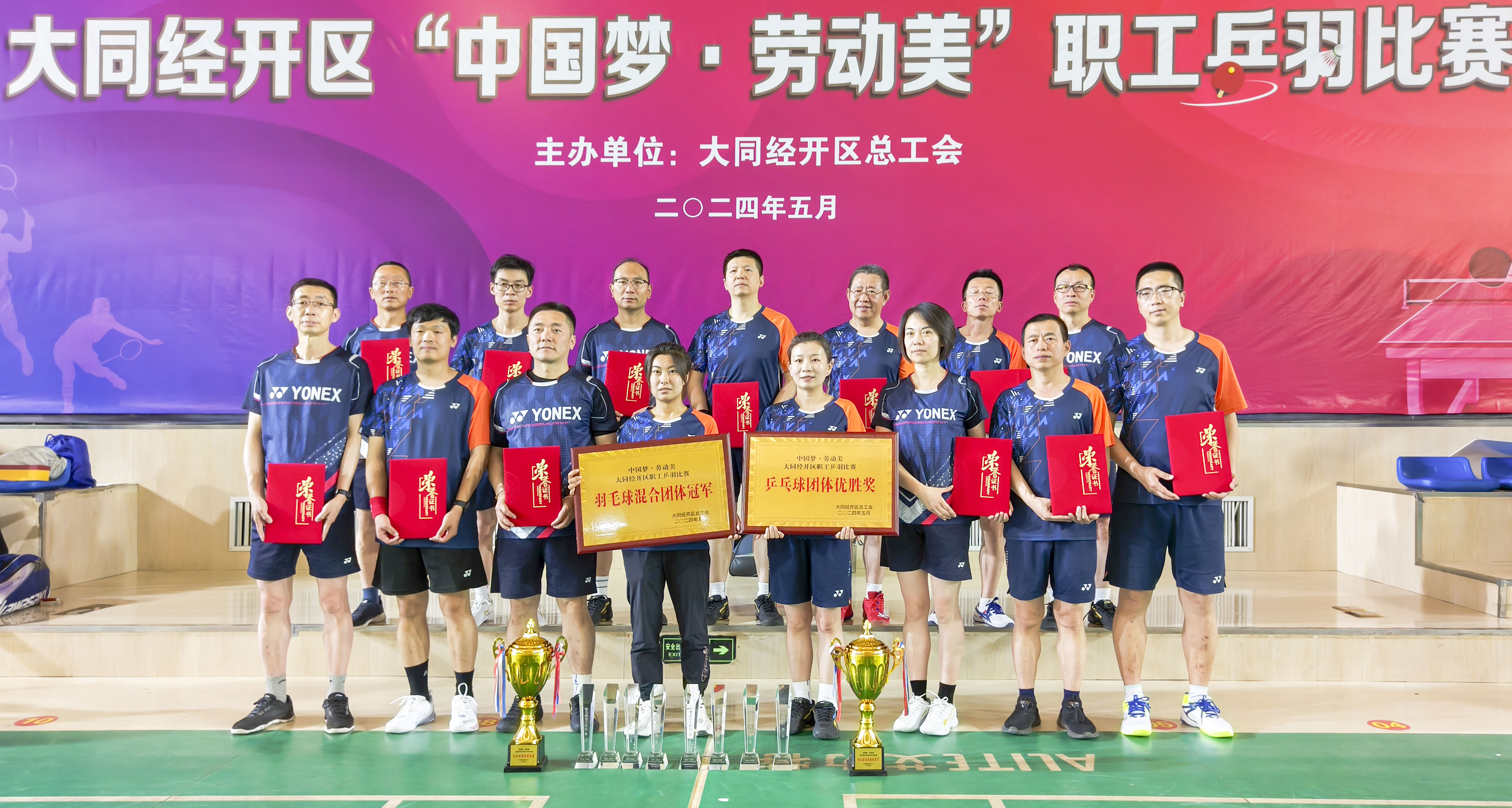 5月16日,由大同经济技术开发区总工会主办的“中国梦·劳动美”职工乒羽比赛圆满收官。经过两个比赛日的激烈角逐,国药威奇达代表队发挥出色,再创佳绩,包揽了羽毛球男子单打冠亚季军、羽毛球男子双打冠亚军,获得男子乒乓球双打亚军,荣获羽毛球团体冠军、乒乓球团体优胜奖。