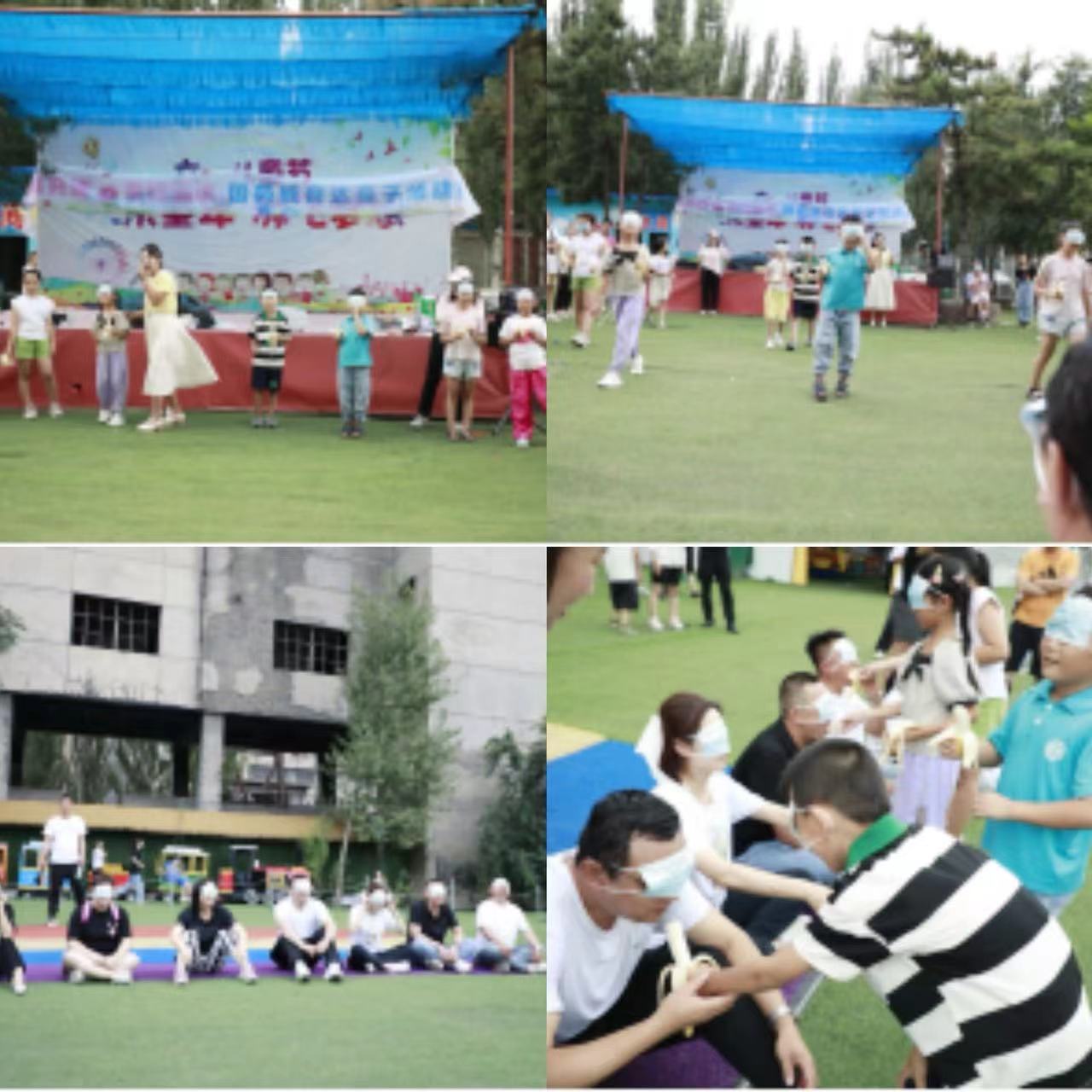 互动游戏根据宝贝们的年龄特点,分为儿童组(3-7岁)和少年组(8-12岁)两组。儿童组开展“开盲盒、揪尾巴、踩脚丫过河”游戏,少年组开展“蒙眼吃香蕉、报纸套圈、亲子运气球”游戏。孩子们和父母齐心协力完成挑战,优胜家庭还得到了精美小礼物,孩子们拿着通过自己努力获得的奖品,脸上洋溢着开心的笑容。